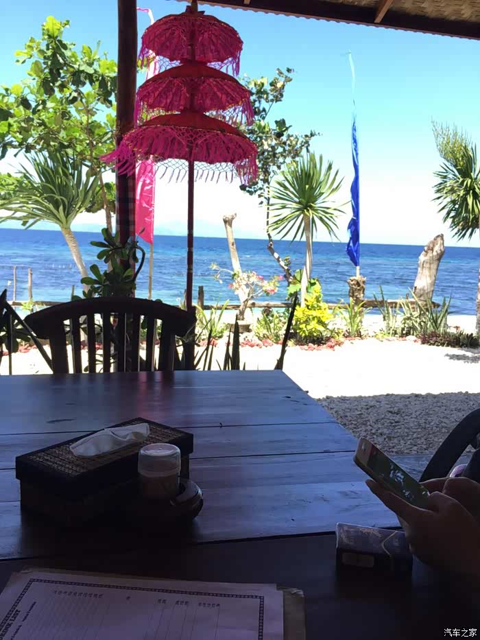 大概两点钟,司机带我们去吃午饭,不论味道,单说环境已经让我看的痴醉,手机随便一框都是一幅画。因为我们没有充裕的时间,不能在小岛上多逗留些时日,不能去看悬崖瀑布,不能去到火山脚下,这算是此次上岛的一点遗憾吧。三点半,我们坐船回巴厘,司机已经在岸边等着我们,送我们去下一个酒店。