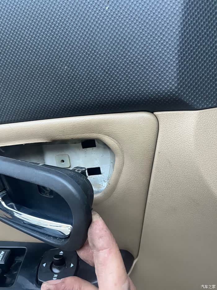 门板螺丝拆掉.把手位置也有个螺丝.把手后面和车门有卡槽.把手往做一拉就下来.不能直接往前拉.