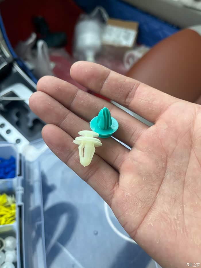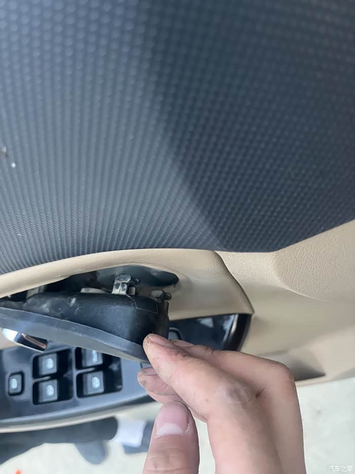 车门拆完4个外露螺丝.2个暗螺丝.一个在拉手处.用胶垫盖住了.一个在中控锁哪里.中控锁哪里还有的小的塑料盖板.记住暗的2个螺丝是平面的.安装时别和外露的螺丝弄混了.内饰板就是塑料卡扣.拆之前最好备几个.用开口大点的钳子找到这个铁片拆下开.