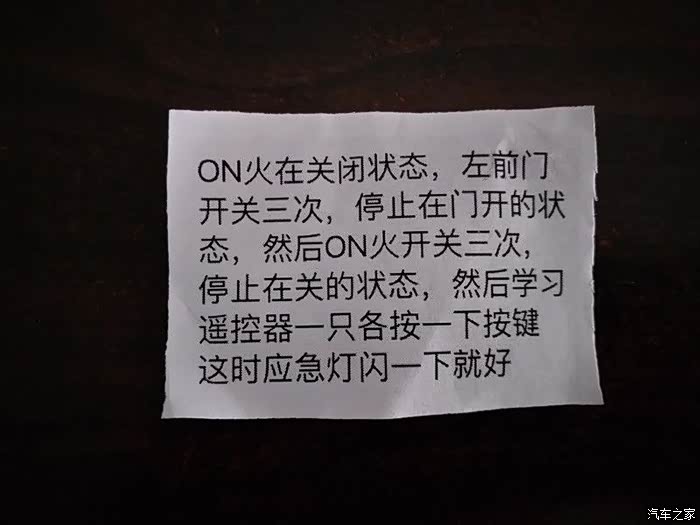 最后按这个说明.在车辆关闭状态.主驾车门打开.找到黑色关门感应器按三下.在把钥匙拧3下不用打火.按每个遥控器锁车健一下就好了.先按车门3下.在把钥匙拧三下不要打火.期间要连续进行不要停.如果不好用.重复几次就好了.