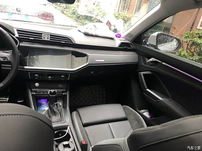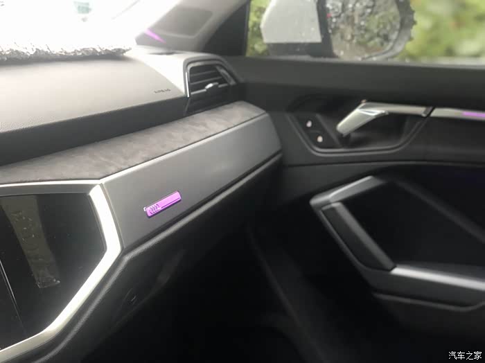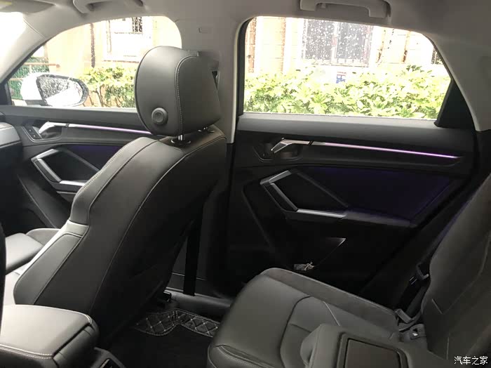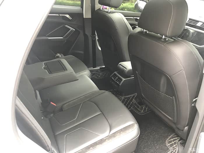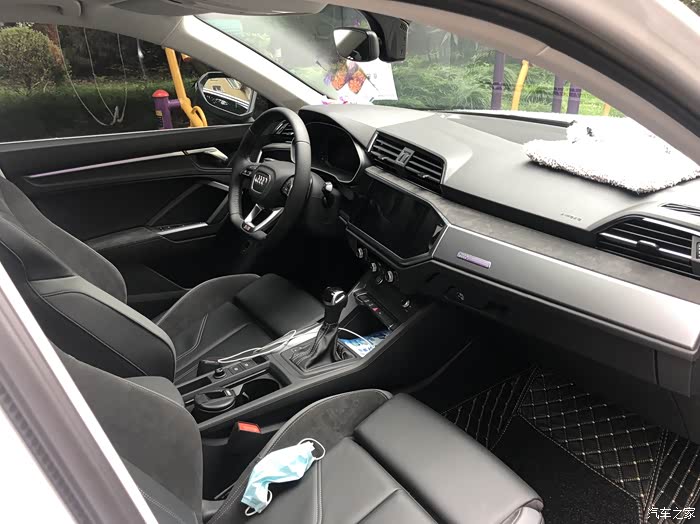 ,内饰虽然没A3L那么的科技感,但是翻毛材质的座椅、中控装饰、门板搁手,平底IS方向盘,第一印象很不错的说。于是问销售有现车吗,什么配置和颜色。小姐答曰“只有两台,一台蓝色的展车、一台白色,都是2020款的时尚40,还有一台灰色35的。”于是拿了钥匙去看了下那台白色的40,好了就是他了!要不怎么说女人永远是外貌协会和冲动消费的典范呢,男人买台车肯定是了解透了各项参数、配置、各个4S比个价再定。到女人这里就只有一条,我看对眼了就可以了,就这样这台Q3 sport back 40时尚变成时隔20多年后我家第二次购买的奥迪车型。