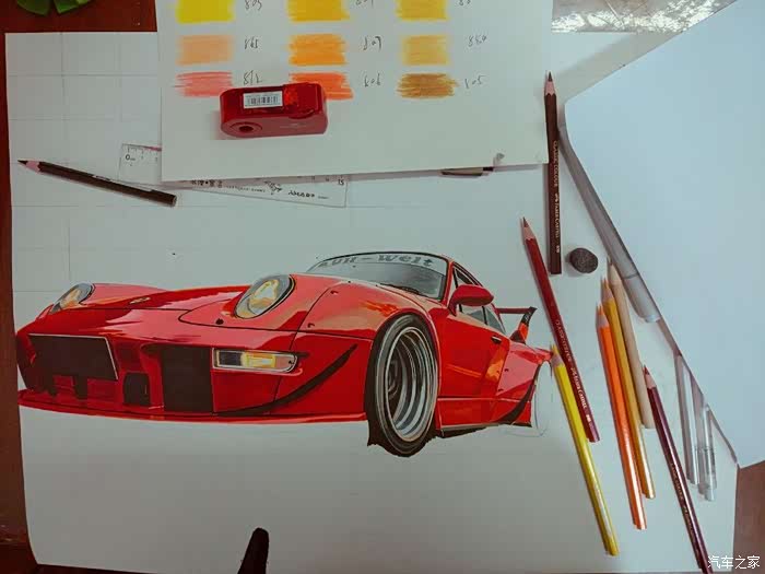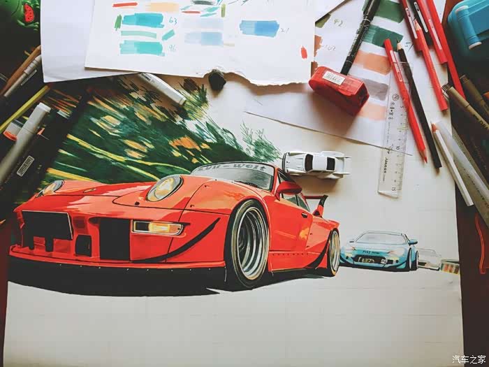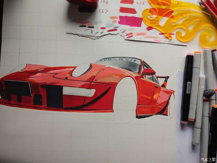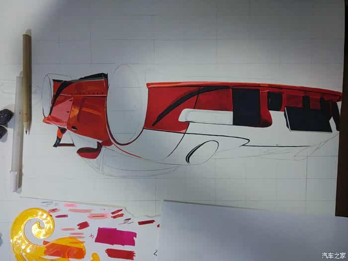 画完这个整个人开心了很久,画完一张下来对汽车手绘有了更深的理解,如果没画这一张,可能我会继续一直画一些垃圾东西。