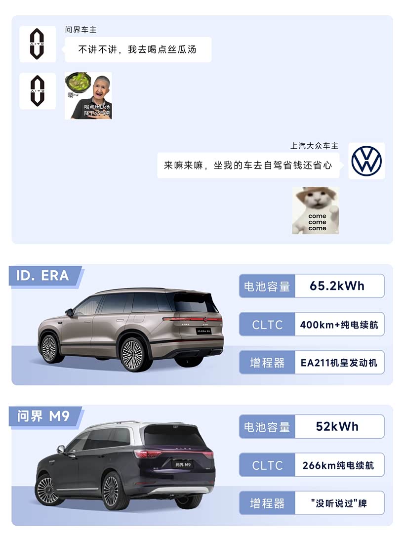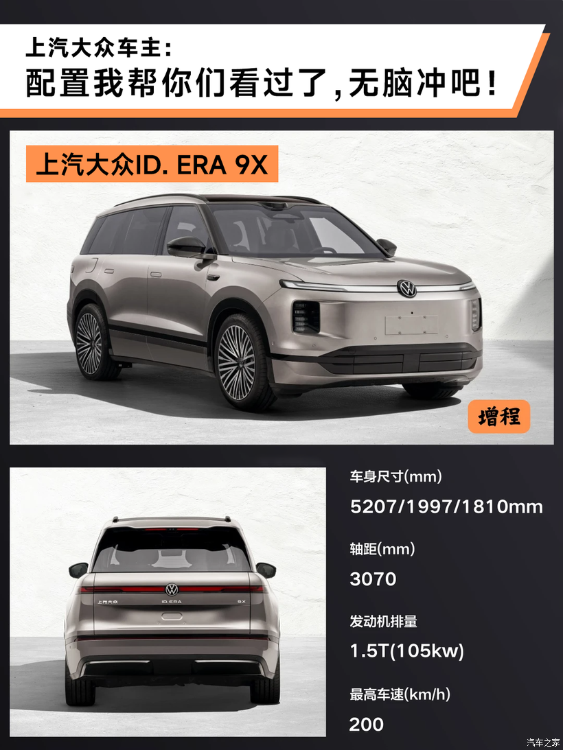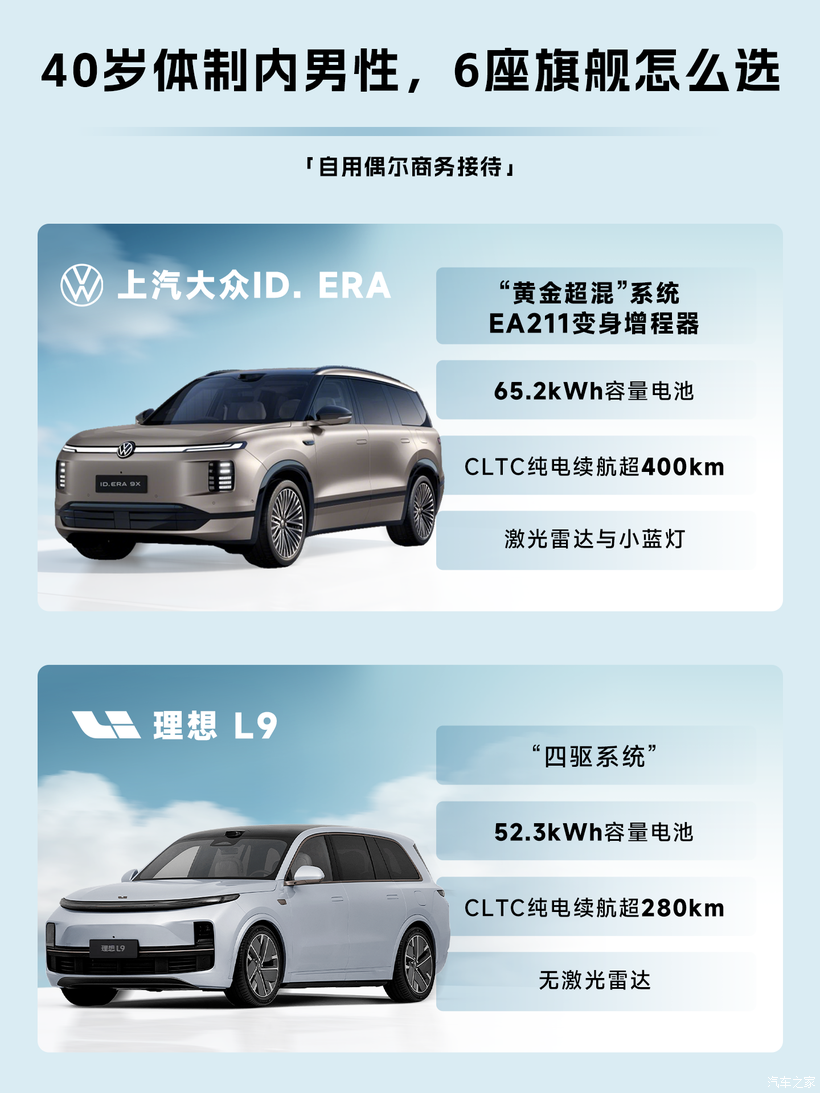 ID. ERA 9X能够脱颖而出,核心是以增程3.0为王牌、德系底盘为壁垒、本土智能为突破、空间与品质为基础,形成“全场景无短板+长期可靠”的差异化,精准对标理想L9/问界M9,打动30万级六座家庭用户 。