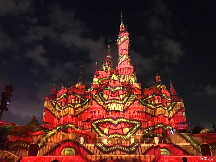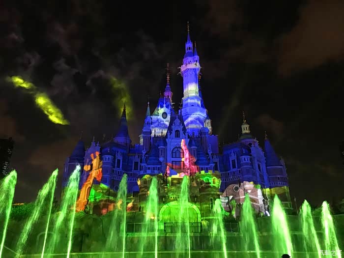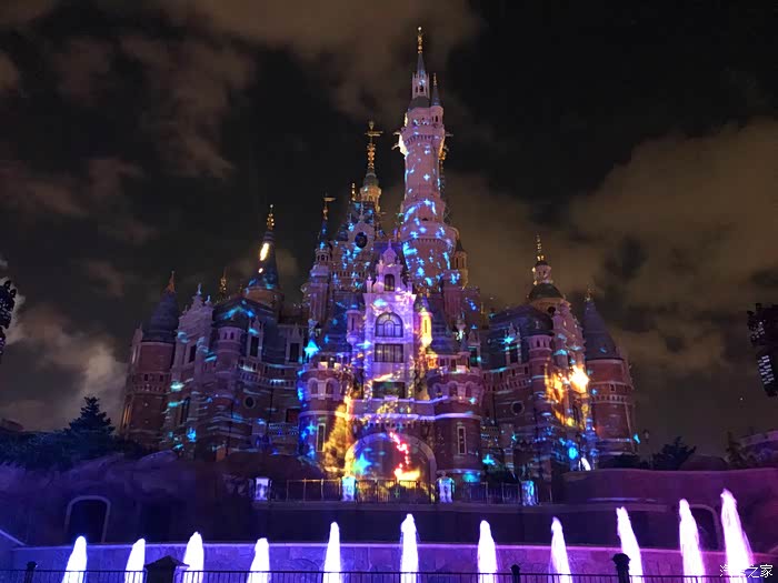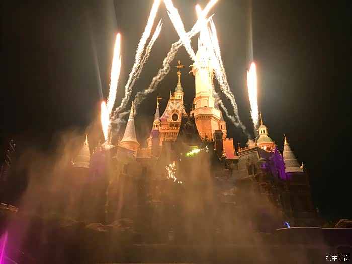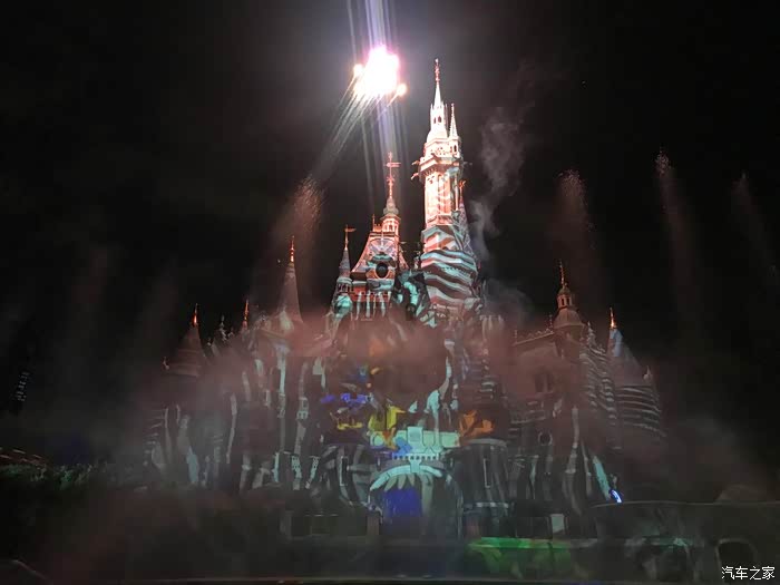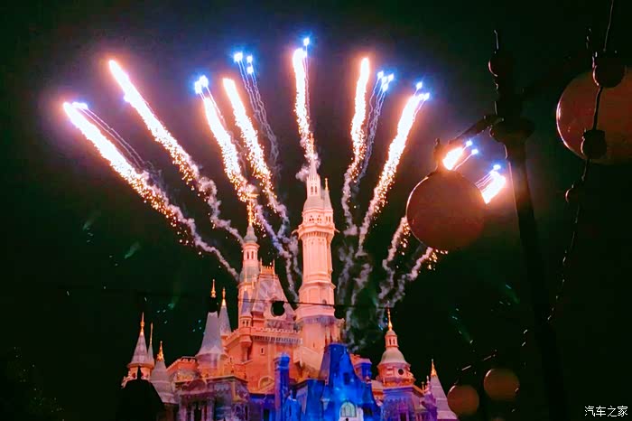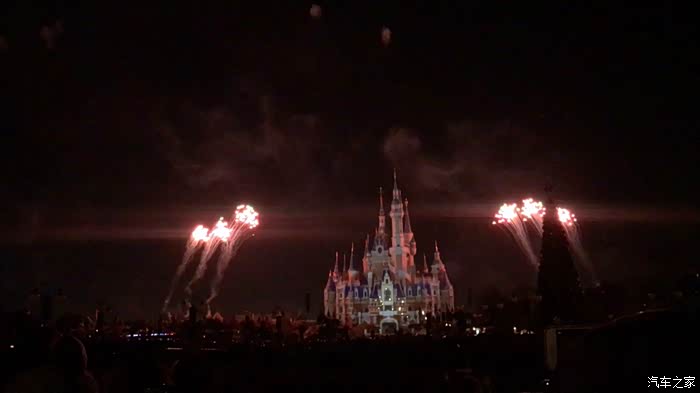 晚上8:30开始,上海迪士尼内的各种巨型投影与炫目激光随着背景音乐的响起,将迪士尼的童话城堡渲染成如梦如幻的璀璨世界,同时烟火一并绽放,漫天绚烂的烟花在城堡外墙叠映出美轮美奂的画面。