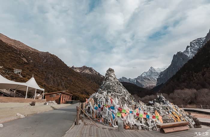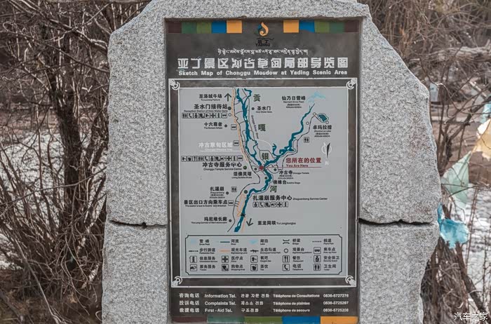 到达冲古寺,在确定五色海和牛奶海由于冬季山路较滑目前是不对外开放后,我们于是商议决定继续乘坐第二道景区观光车先走长线。