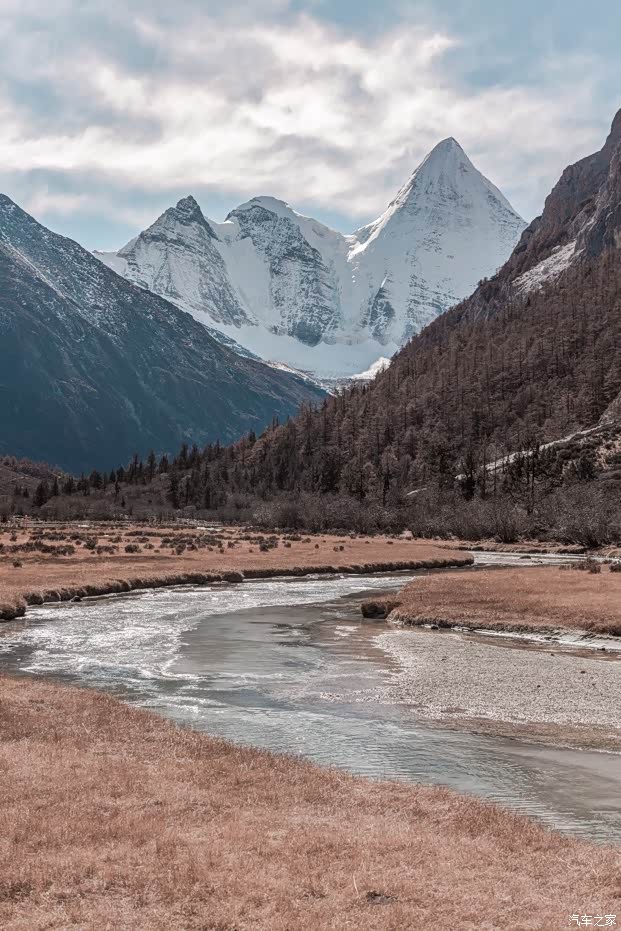 回到山下,在冲古草甸,利用好最后的黄金半小时,再守候一场 稻城 三怙主的 日照 金山 ,优美的山形在阳光下逐渐变幻着色彩,即使在干冽的风中,能再一次欣赏到这样的美景也足以在心中烙下深刻的记忆了