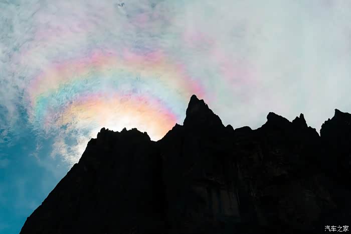 当然这次长线徒步最神奇的经历莫过于看见了“七彩祥云”,过去以往的旅行中类似于日晕,彩虹这类气象都有见过,但这次当我们行至 亚丁 长线圣水门时,无意间抬头看到山体周围的云隐约变成了彩色,最初还以为是因为带着墨镜造成光线的折射所致,没想到又走了几分钟再次抬头,发现云层的色彩更加分明了,于是将墨镜摘下仔细一看还真如七彩祥云般,赶紧告知同行的伙伴们,这样旅途的惊喜无疑是将行程又带到了一个宣泄点。