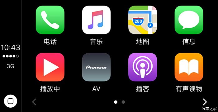 这款导航有两套系统,第一套是先锋自己设计的影音系统,功能众多,而第二套就是个人非常喜欢的Carplay,只要一连接上苹果手机,导航就自动切换为Carplay模式,而且两个系统可以随时一键切换,作为一个果粉,不得不说非常赞!