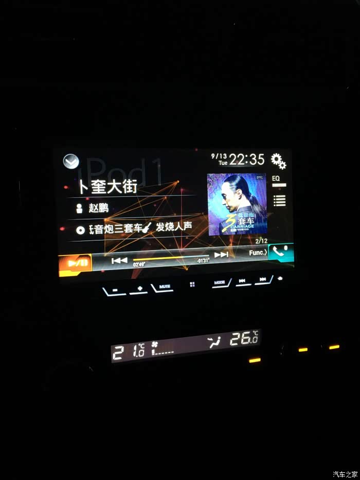 注2:最下方的一排按键背光是可以改成任意颜色的,是任意!!!我后来把按键背光改成和原车下方空调部分一样的橙黄色了,很和谐!