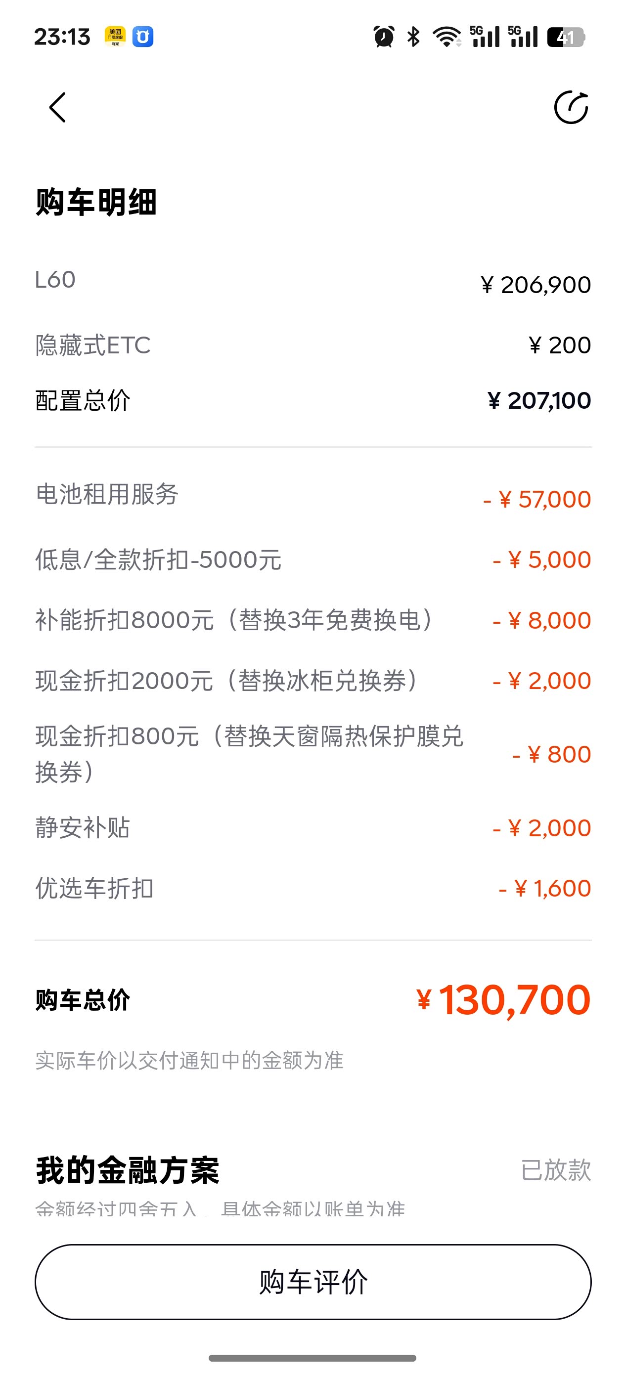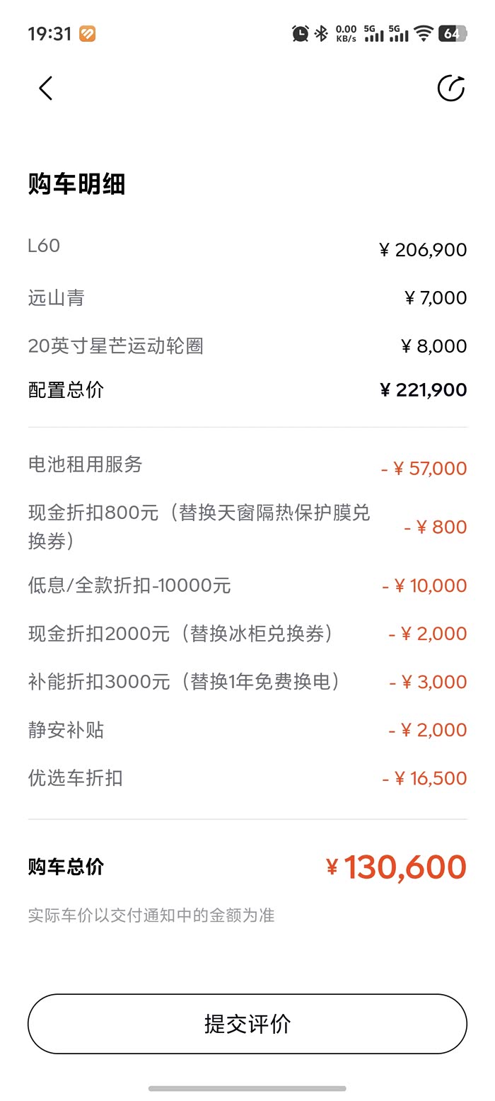 我是买断,跟你优惠差不多,紫外和星芒轮毂送了,前两天订的,这周能提车了