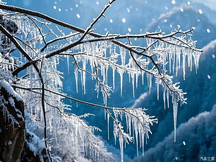 一路上,我欣赏着冬日独特的美景。远处的山峦被白雪覆盖,像是披上了一层洁白的纱衣;路边的树木,枝头挂满了晶莹剔透的冰凌,在阳光的照耀下闪烁着五彩的光芒。而我的埃安Y,就像一个灵动的精灵,穿梭在这银装素裹的世界里。