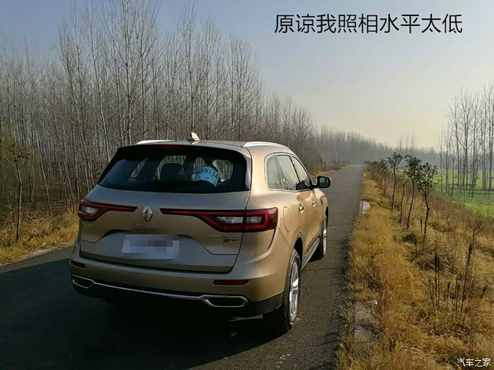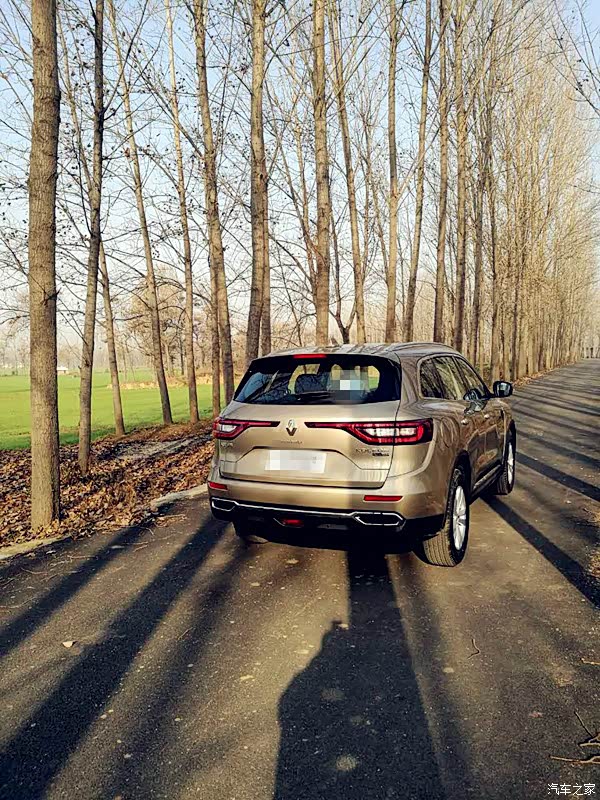 说说车吧,自然吸气发动机加上CVT变速箱,大概30码的时候松油门会有发动机制动的感觉,2.0的直喷发动机怠速时候声音稍微大一点,这是我跟其他车友交流他们也有的情况。漂亮的外观,内饰也不错,有些个性的设计有的朋友觉得很另类,比如方向盘上的音量调节,我用了几天后感觉非常的实用和方便,大屏也很流畅,可调节的东西很多,提车这几天我一直在研究,挺有意思的。我买小东西的时候经常选择困难,但是买大件东西比如房子和车倒是比较果断,买第一辆车的时候也是三十分钟直接交钱开走,使用了这几天证明自己的选择没错,驾驶感觉不错,底盘也有所谓的高级感,很多准车友问我论坛里说的胎压监测不好用,启停不好用,洗车大灯进水等等我都一一的解答了,胎压监测是需要行驶一段路之后才会显示的,就算是奔驰S级上的胎压监测也要行驶一段路后才显示胎压,启停这个功能以前我都是上车就关,有车友问我好用不我这两天试了试,还算好用,启停这个功能都有车辆各方面一定的要求,红灯的时候如果达到自动启停的要求车会熄火,仪表盘有个绿色的标志,绿灯走的时候松刹车就启动了,启动的还比较平顺,如果听着歌你可能都注意不到。我已经洗了三次车了,没有发现灯里有水雾。目前我是没有发现有什么不满意的,很多功能都很方便,离车两米车自动落锁(会有提示的声音和灯光),自动大灯,自动雨刷,晚上没怎么开,也不知道灯的亮度到底够用不,但是在城里开感觉是足够用的。等哪天晚上上高速或者国道上试试。反正我心里想着全新科雷傲是东风雷诺的拳头产品,是为了打开局面这个背景下出的,如果全新科雷傲有很多毛病,那无疑是搬起石头砸自己的脚。我的总体是对科雷傲满意的,觉得自己选对了!