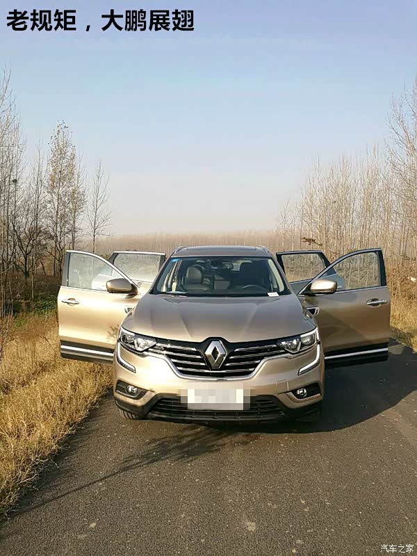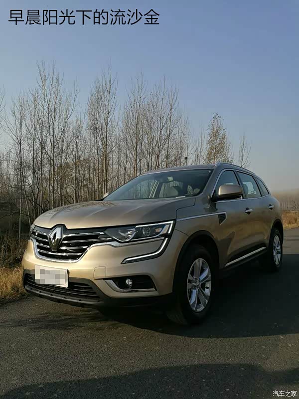 直到有一天在汽车之家上看到了全新科雷傲的新闻,那漂亮的外观个性的日行灯瞬间打动了我,也许这就是我一直想要的吧,去了4S店几趟,试驾车回来之后看了看也试驾了,然后在11月26号上午得知有两辆2.0豪华流沙金到店后跑去看了看,我家LD一眼相中这个颜色,本来想等2.5的车,但是得知后来回来的不是这个颜色,就直接交了定金下午提车,在全国很多朋友都在等车的时候我竟然直接去店里提走了一辆现车,想想还真是有意思,新车厂家补贴一万购置税也让我感到了雷诺满满的诚意,开始还担心2.0会很肉,结果开了之后感觉足够用了。当然2.5的动力会更好,如果现车有2.5的话我肯定要好好的考虑一番了。2.0是缸内直喷,2.5是多点电喷。