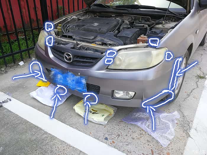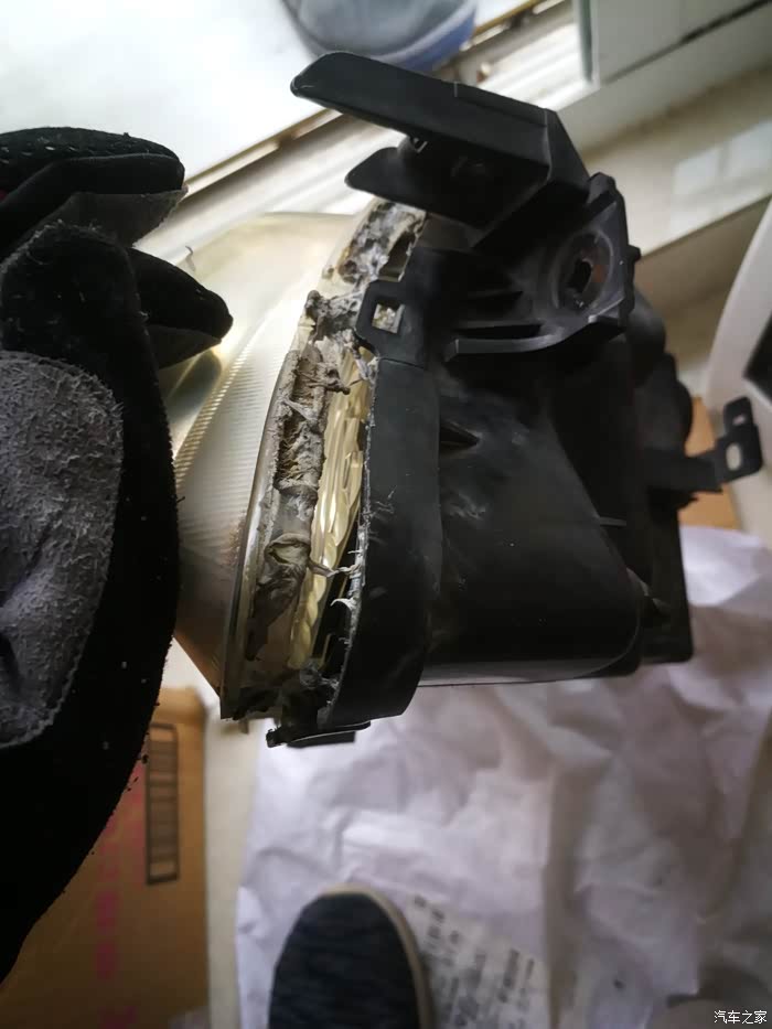 1.把旧大灯灯壳拆卸下来(要先拆前保险杠);