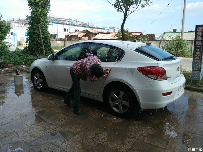 下面是车身照片,前面是一辆也洗的白白的三厢兄弟