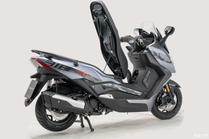 动力上318GT升级了一台全新J350型号的单缸水冷引擎,配备了全新的平衡轴和全新研发的CVT传动系统,不管是震动抑制还是动力的输出都更加出色。参数方面该引擎实际排量为329cc,最大功率21.5kW/7500rpm,最大扭矩31.8N.m/5250rpm。最大马力也从LK300T的23.8匹提升至29.2匹,这个动力水平几乎与本田NSS350持平,0-100加速仅需9秒。