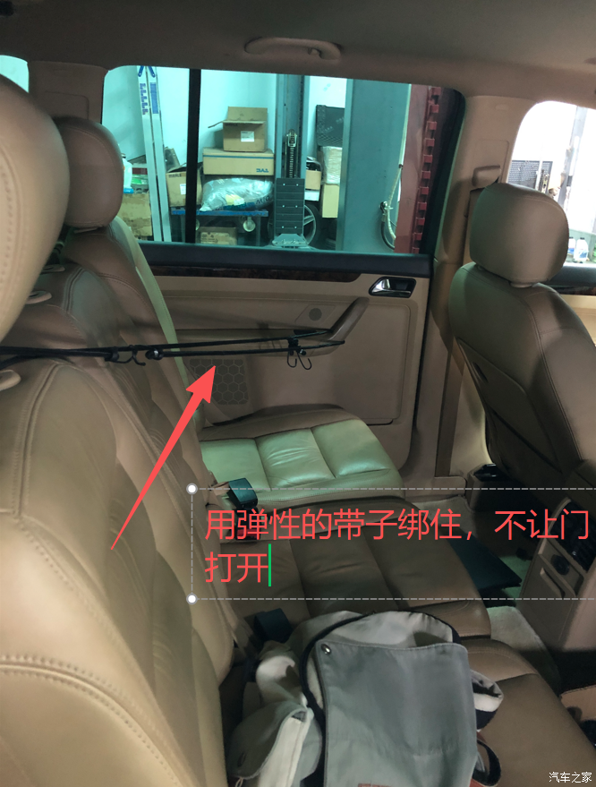 车内拉了个弹性的带子拉住,希望不要弹开,因为要开几十公里过去第一次面包车聚会