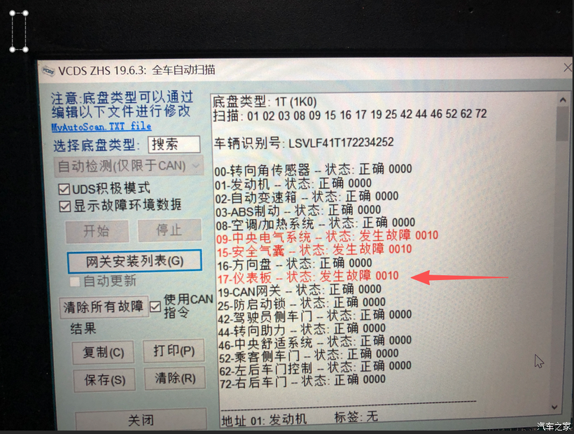 装完ABS泵后,还有一个仪表的故障码,但是网关不支持进去网关,所以就需要更换更高一级的网关