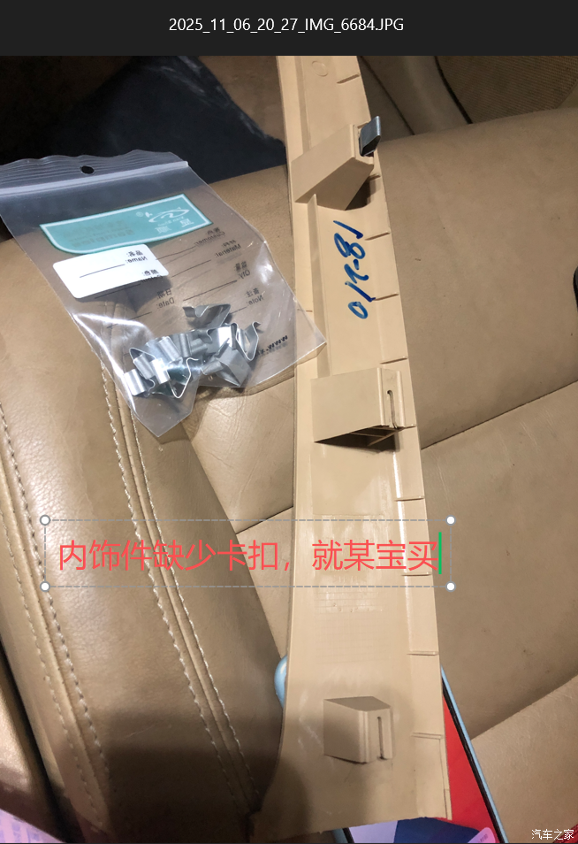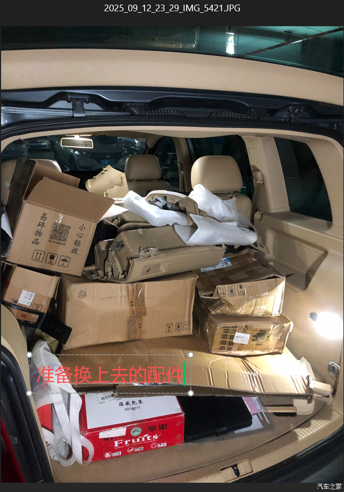 回家停好车后,拍一下拆下来的配件