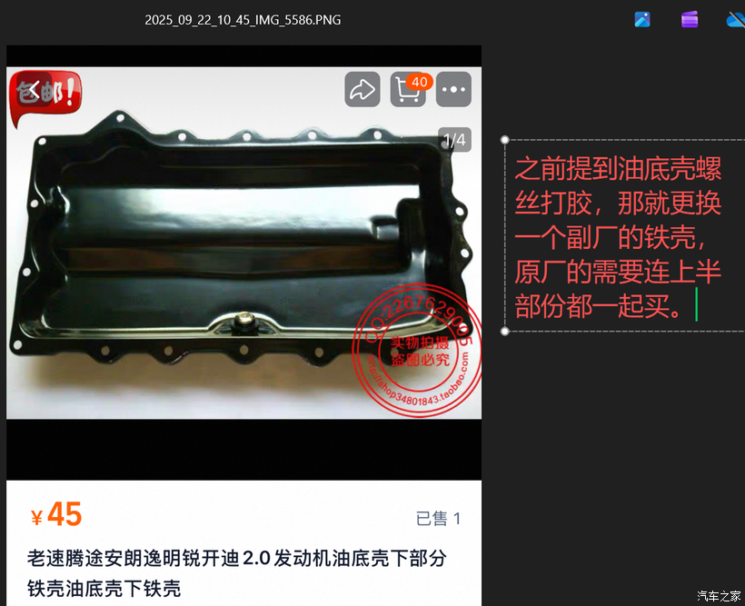 上面的漏水和漏油处理完后,开着车了去做四轮定位,发现其中一个下摆臂是副厂的,数据差得有点远