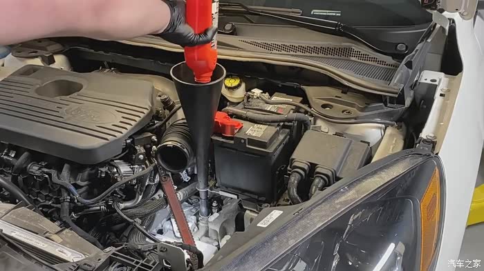 让多余的变速箱油从这个孔流出,等不流了 就可以锁紧堵塞,然后变速箱油更换结束。 (查看相关信息表述福特车型装配的6F35或者8F35变速箱都是有这个操作的)