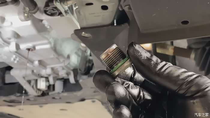 不管加了多少油,需要热车把变速箱油升温到85~93度,然后打开位于变速箱左侧半轴后方的溢流螺栓。