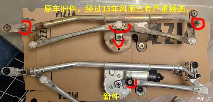 2012年的老F已满13岁周年,今年基本没怎么用车,加上整个夏天雨水又多,雨刮器卡滞不动了。打开看了下两个转轴和连杆生锈严重,电机似乎也有进水的痕迹。考虑到年限已久即便修了也要经常维护,干脆就从Tb买了电机和连杆一套总成140。