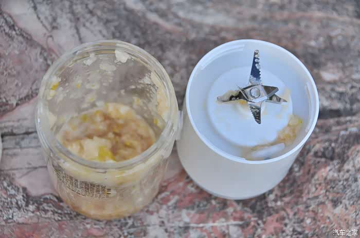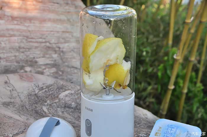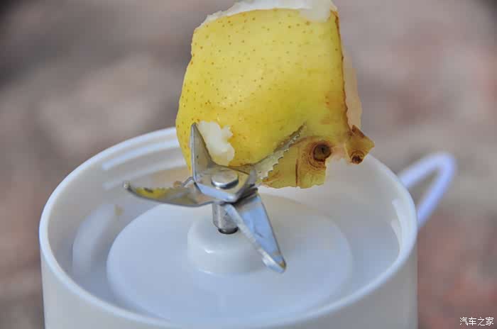 测试榨汁效果我准备了一个梨,可惜准备不够成份,没有把梨切成小块,这是我没想到的问题!使用中机身刀头不工作了“不转了”,打开果汁机发现梨块过大卡住了刀头上,所以不工作!
