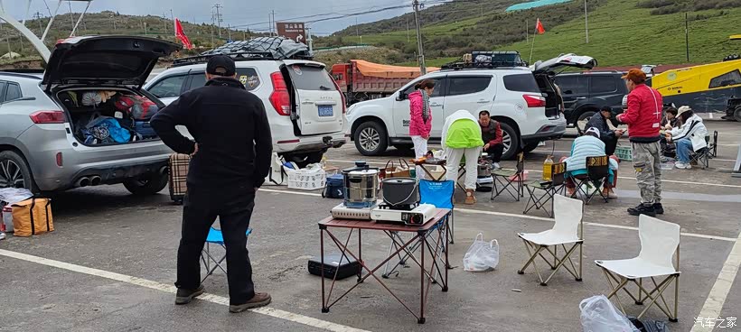 8号中午到达黄河长江分水岭观景台,这里有水有卫生间,各车在这正式拉开了野餐煮饭"大比拼″。