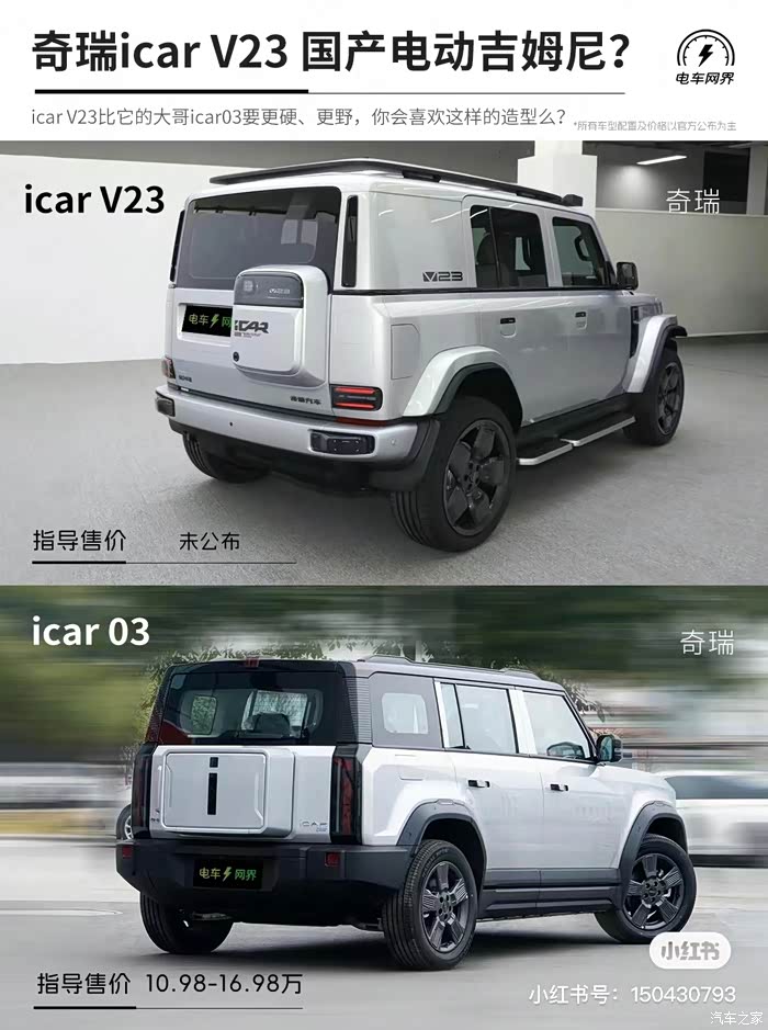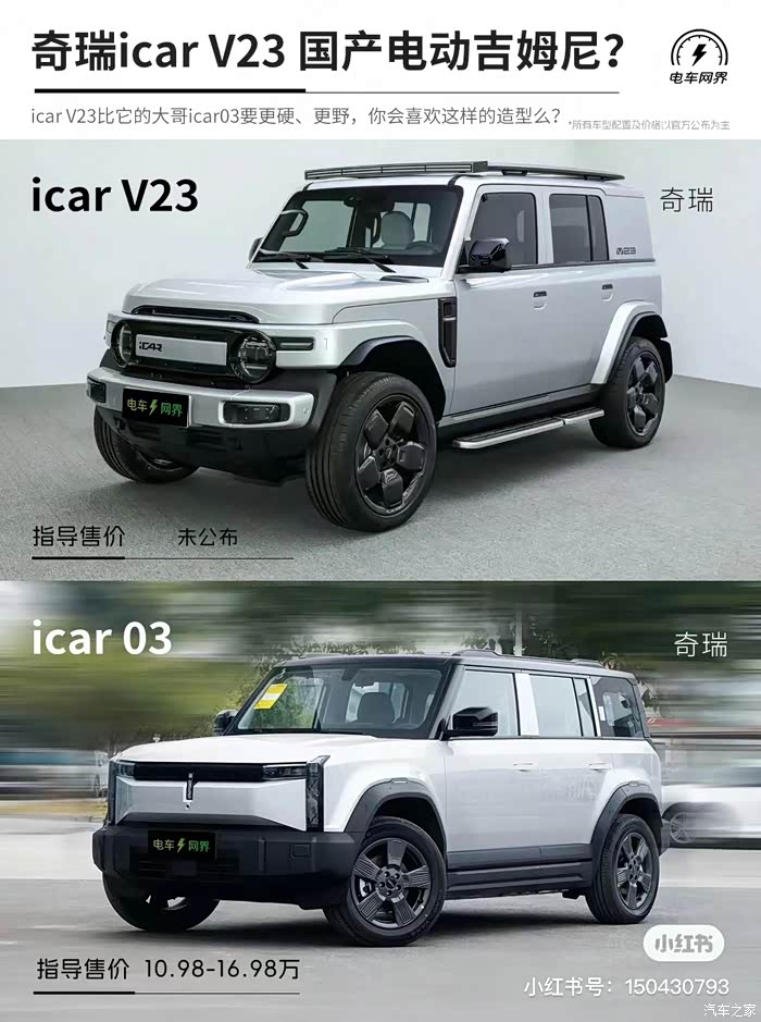 2、关于v23的价格,众说纷纭。除了外观可能给v23有加分,从暂未放出的种种细节来看,v23的配置和布局全面低于iCAR03,我认为售价是不会高于03的。