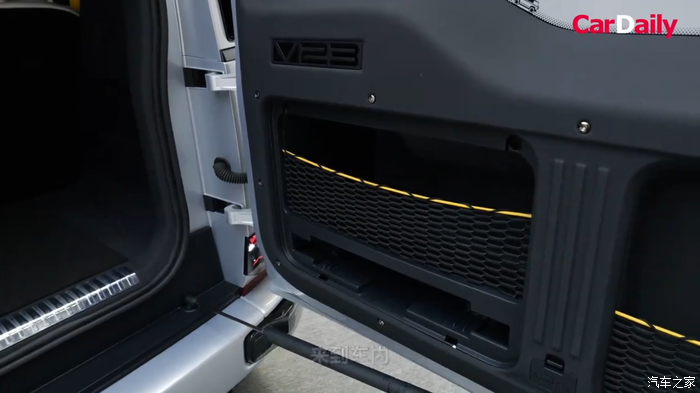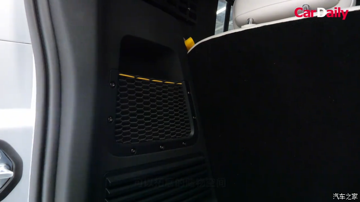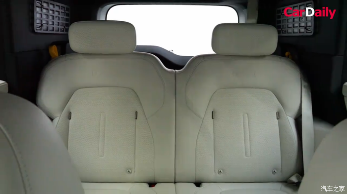 前排看后排视角。后面是双排座,没有中央座椅,也不会有中间杯托架了,全车4座?还能看到后备箱上的网格,后期可以挂户外装备。