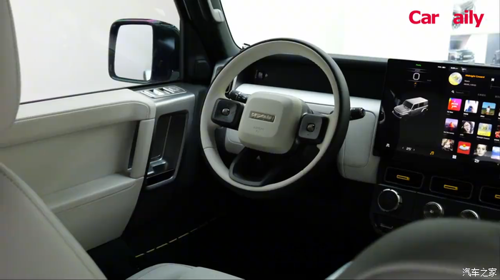 2、回归正圆形方向盘,中间横置大屏,下面三个出风口,再下面是四个实体圆形旋钮。