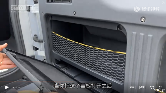 后备箱左侧下方,网格下面掏出来一个网兜放点儿工具啥的小物件。