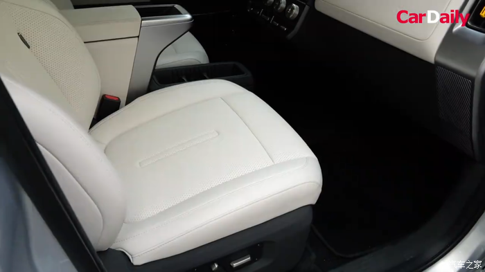 座椅靠背特写,打孔皮面,感觉包裹感挺好。