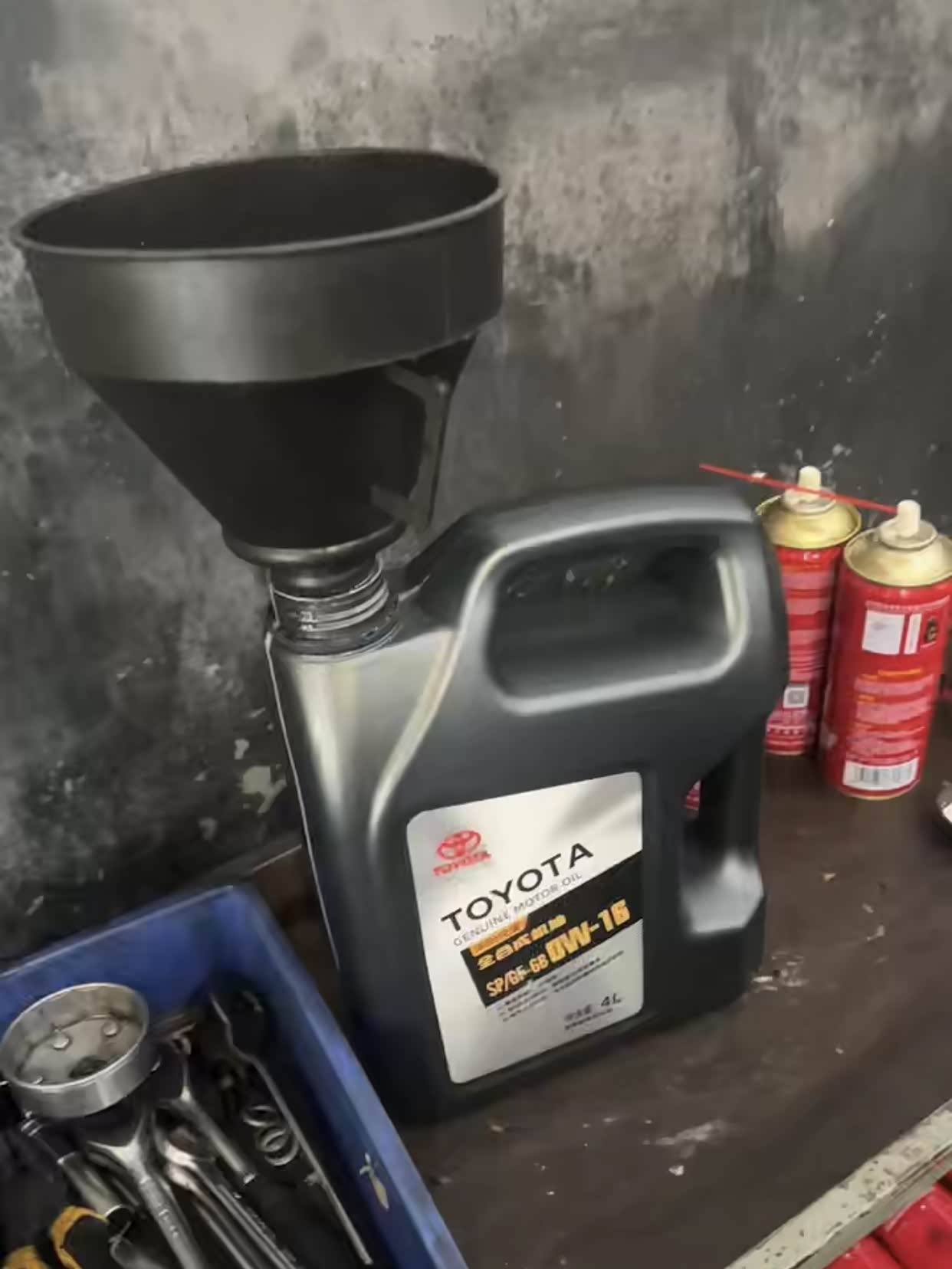 到了加新机油环节,威兰达2.0L自吸发动机适用0W - 16低粘度全合成机油,师傅缓慢倒入,边加边观察机油尺液位,加到中线位置(约4L) ,既保证润滑,又避免过量增加积碳。加完机油,师傅启动车辆,让发动机运转片刻,再次检查机油液位和是否有渗漏情况。