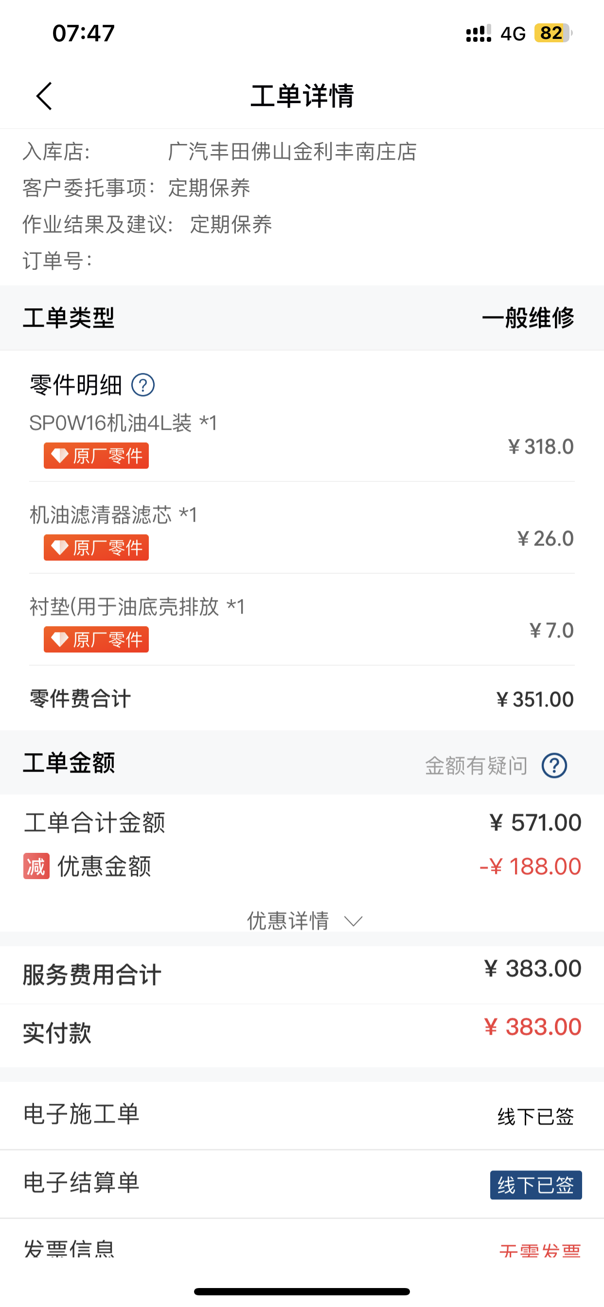 预约好时间后,我来到4S店。售后顾问热情接待,登记车辆信息,还仔细检查了外观,随后开具保养工单。