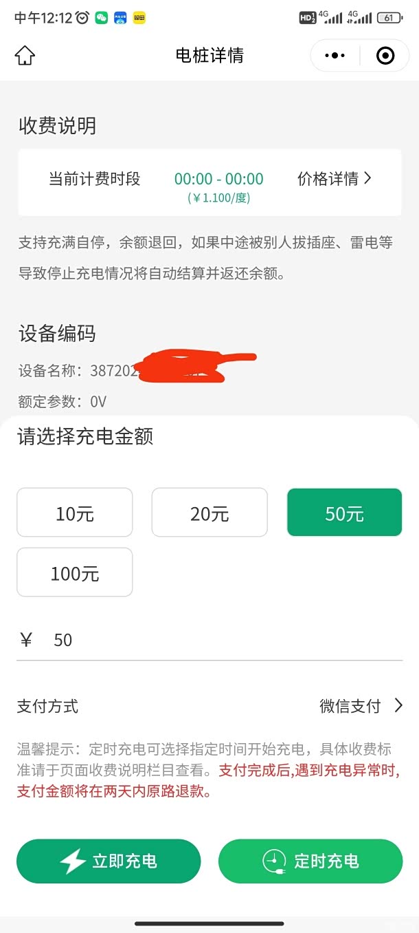 按照提示充值预付充电费(建议充值比需要的多一点,因为后面用不完金额的可以退回。)有一些公桩厂商支持信用模式—先充后付,那就不需要预付电费。
