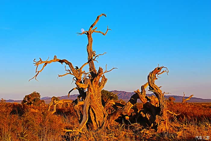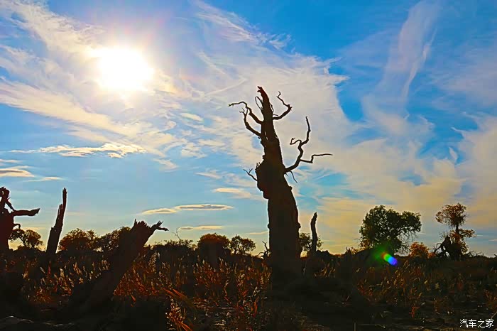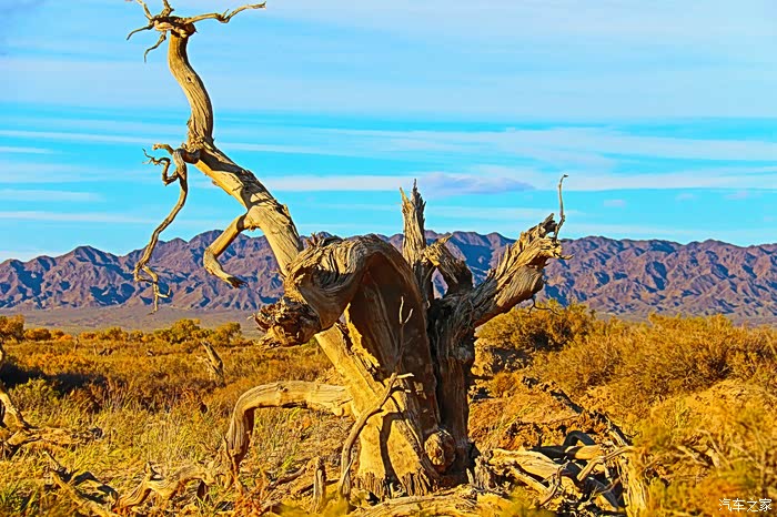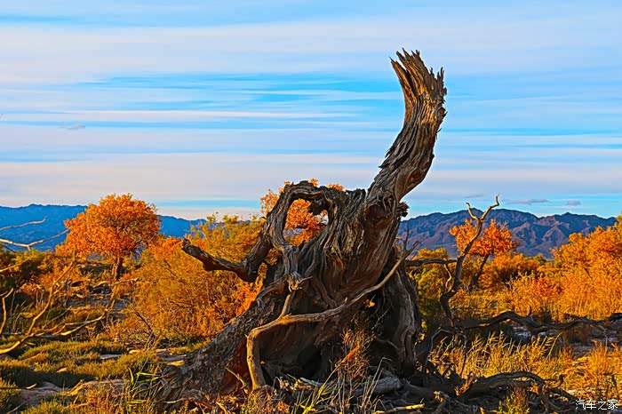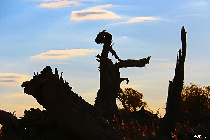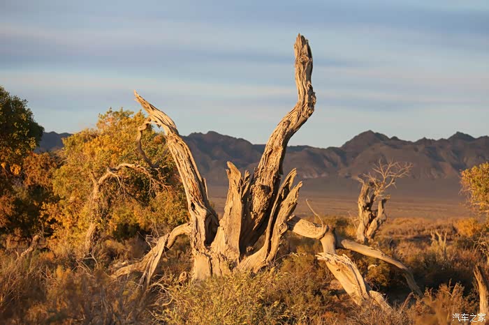 9月25日,***传统节日古尔邦节的第二天,早10点从乌鲁木齐出发,奔向400公里外的木垒,去观赏6500万年的沧桑——胡杨。胡杨是第三纪残余的古老树种,是一种生命力极顽强的原始树种,素被人类誉为抗击沙漠的勇士。胡杨生长期漫长,由于风沙和干旱的影响,很多胡杨树造型奇特、诡异。由于它具有惊人的抗干旱、御风沙、耐盐碱的能力,能顽强地生存繁衍于沙漠之中,有“生而不死一千年,死而不倒一千年,倒而不朽一千年”的说法。胡杨在新疆很出名,南疆胡杨主要分布轮台、沙雅和泽普等区域,围绕塔克拉玛干沙漠周围;而北疆胡杨主要分布在古尔班通古特沙漠的周围,以木垒的胡杨最为著名,因为它多是死去枯干了的胡杨树干,形状各异、千姿百态,似万马奔腾,似张牙舞爪,似策马扬鞭、似大鹏展翅,更多显现的是胡杨沧垒的历史,而这个季节正是北疆看胡杨的好时候,让我们一起去领略一下6500万年的沧桑。