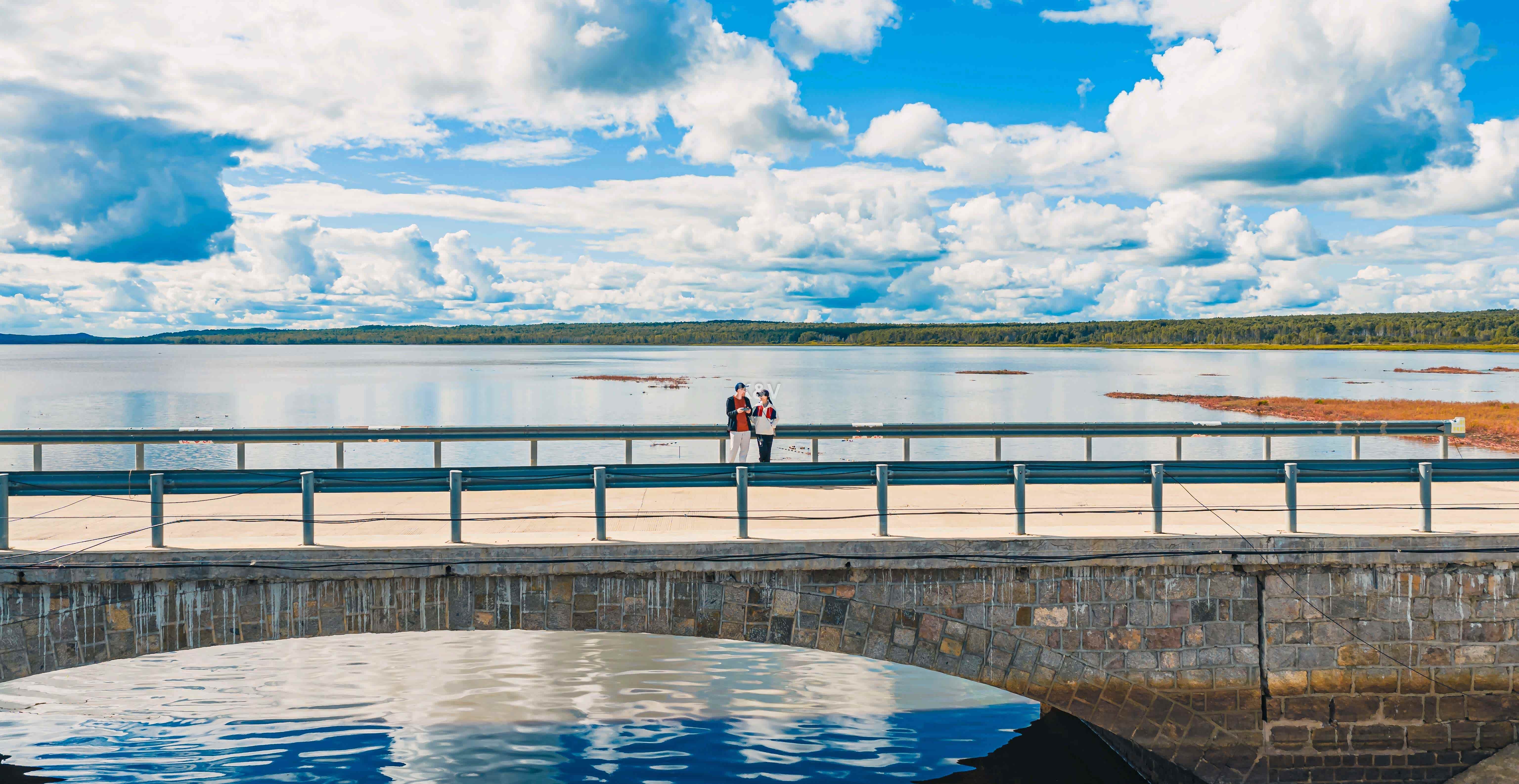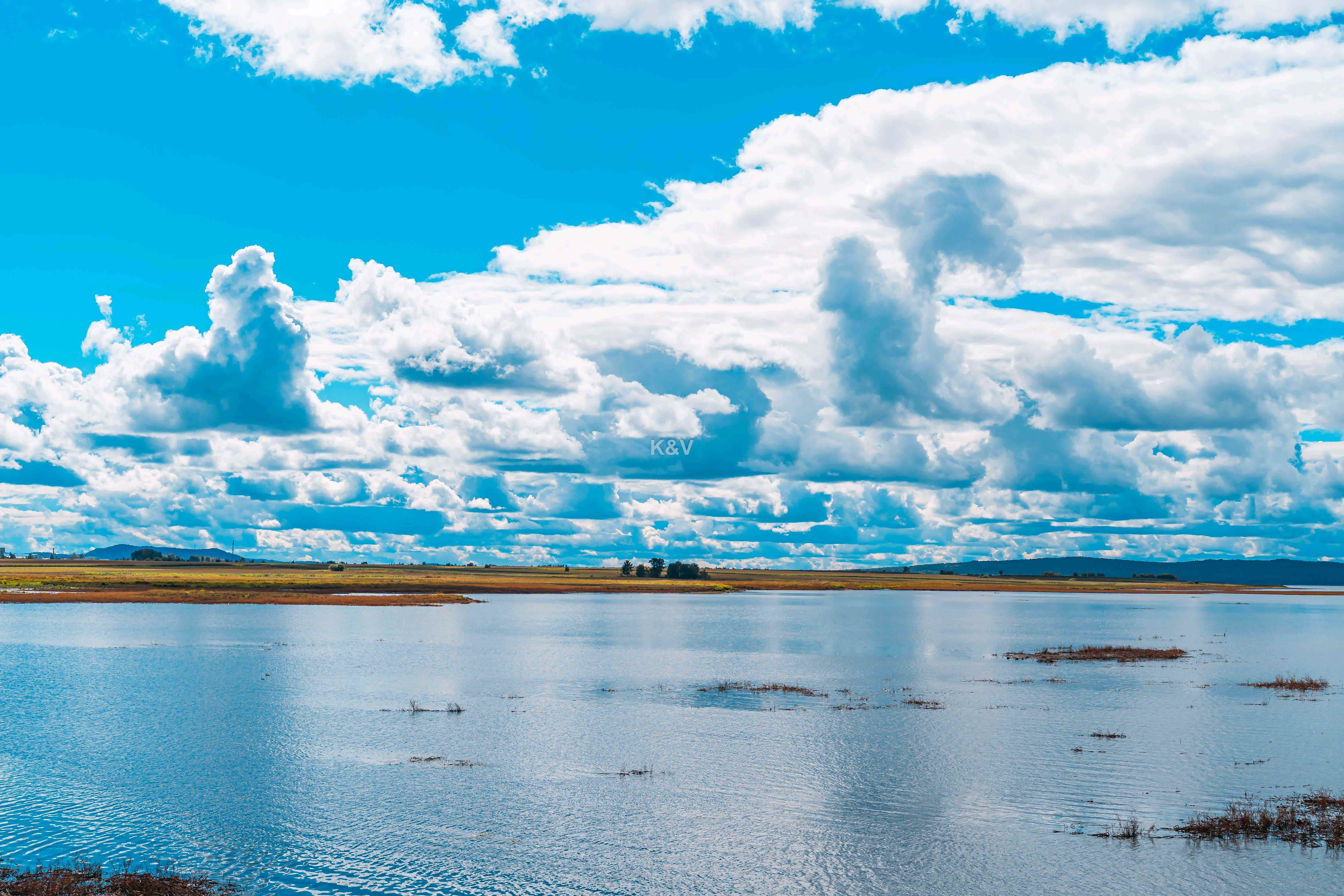 驶出林区后的天空一览无遗,在库尔滨水路封神!彼时天空湛蓝的没有一丝杂质,云朵像是巨型泡泡机吐出来的白棉花,静谧的水面倒映出的并非颠倒的世界,而是另一片绝美的天空!我们在桥边流连忘返,俯首之间都是蓝天白云,大地消失了,天空从四面八方涌来,直到微风乍起时的涟漪阵阵,将水中的朵朵白云吹皱揉碎,水里的天空终于摇摇欲坠~