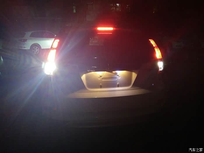话不多说直接上今晚开灯的效果图(顺便换了倒车灯,倒车灯很亮黑夜里倒车更有信心啦)效果绝对赞,妈妈再也不怕我走夜路了,哈哈PS:今晚在小区里试远光灯的时候一哥们看着我的大灯还以为我开的是豪车呢,嘿嘿……小小的满足了自己的虚荣心。