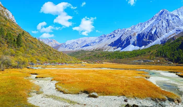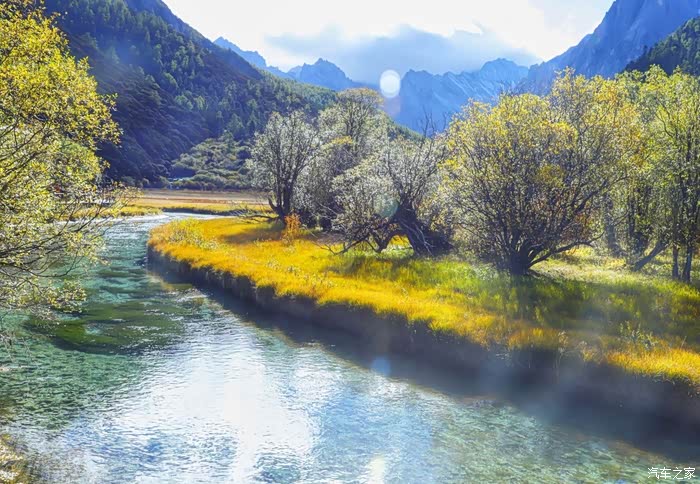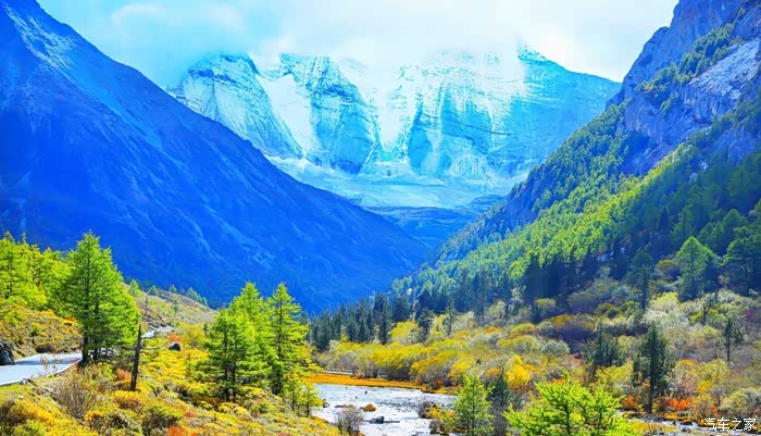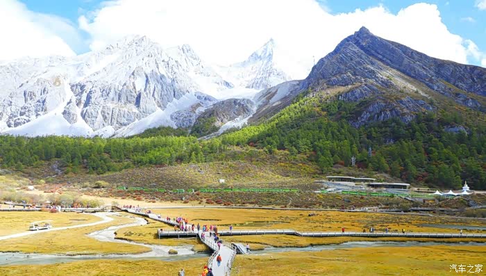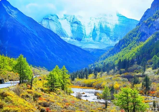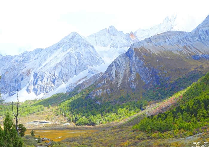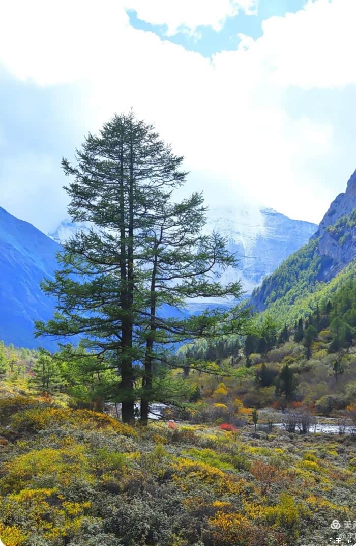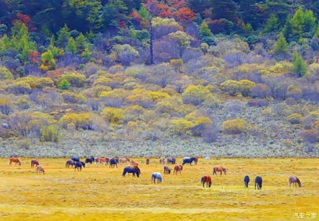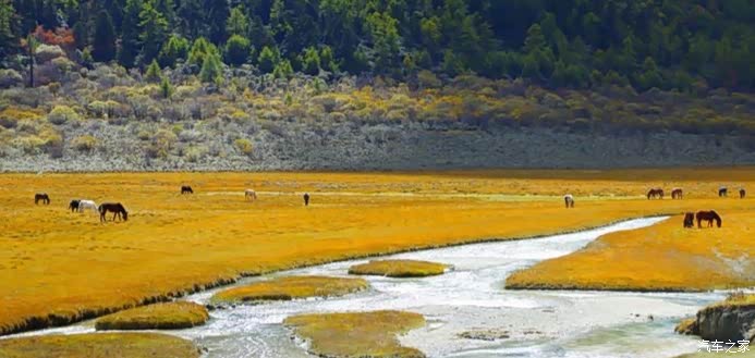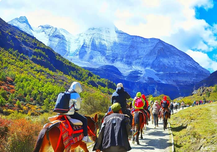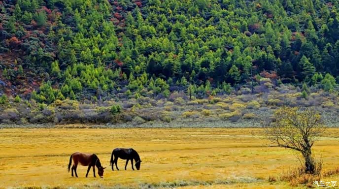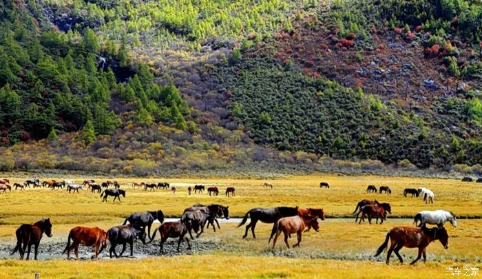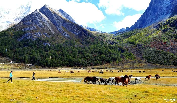 稻城亚丁,一个充满神奇的地方。云在天上飞,水在地上流,色彩斑斓的草木长满山坡,成群的牛马漫步溪边。