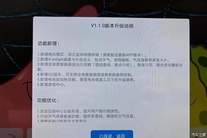 1、上次检查完智能远光灯4s店给更新了程序后,界面底部左侧增加了总续航里程,底部右侧油门功率进行了小优化。