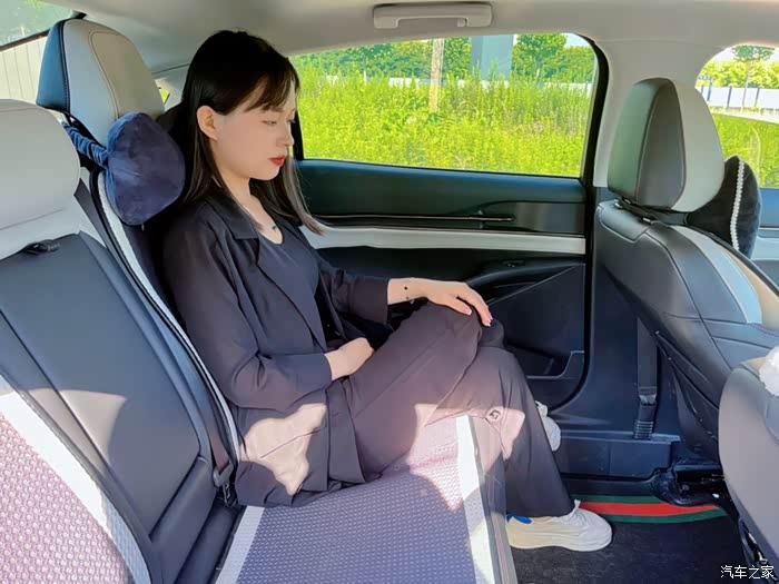 后排的空间我个人觉得很宽敞,我1.65的身高坐进去不管是头部还是腿部空间都比较宽松,即使满载也不会觉得很拥挤。