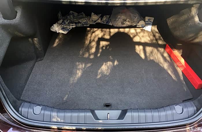 三、后排大得惊人。后排腿部空间大到无法形容,如果以“拳”为单位,估计有5-8拳(后面有图说明),头部空间1拳以上,宽度坐3个成年人毫无压力。后排座椅有些上翘,有网评说对大腿的承托不够,但对我自己的体型而言,亲测暂无压力,乘坐没有违和感。
