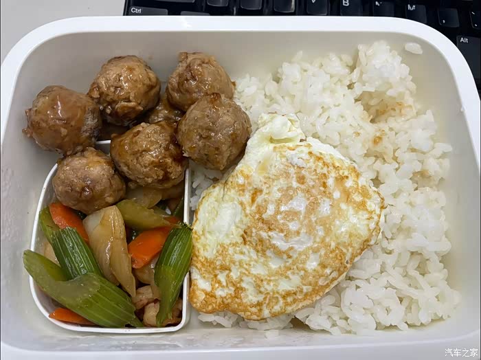 今天在办公室上班。中午吃老婆做的饭盒