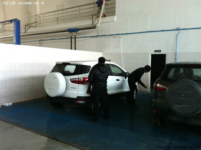 车到了,工作人员正在给我洗车!白色是我的,旁边的灰博是另外一个人的,都是乞丐版!