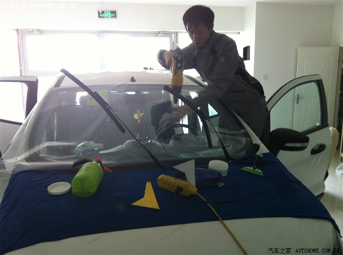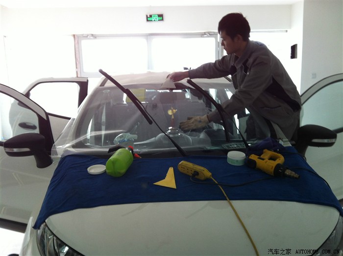 前档也帖好了,基本上在4S店的装修就玩了,总的来说很差,地胶贴的不平整放上脚垫以后,离合器、