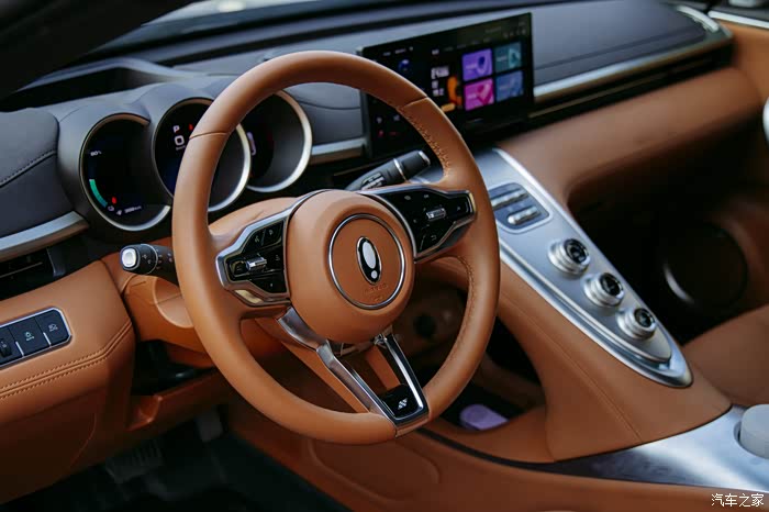 仪表盘的造型是采用了超跑上比较常见的炮筒造型,内部是圆形的液晶显示屏,这种复古跟现代的混搭风格也是点睛之笔。