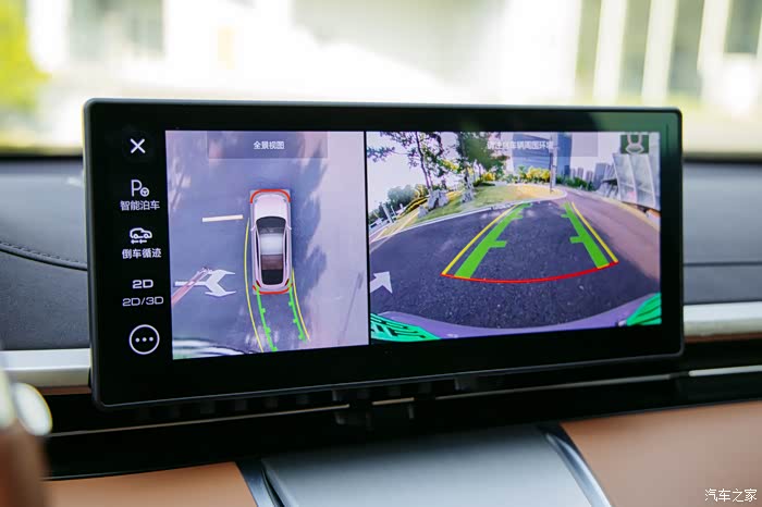 360全景影像可以说是完美的解决了停车难题,可以看到画面很清晰,可以自由切换视角,角度比较广,没有视觉盲区,而且透明底盘这种功能也有配备。