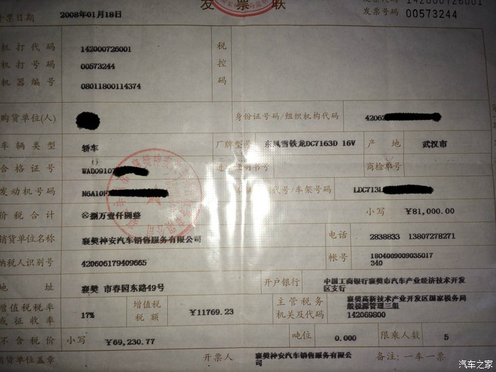 提车的时候还是家里借钱提的.(感谢父母)当时家里只有3W多点借了5W..4儿子要价83000.没办法找人最后只能优惠2000.最终81000够的爱丽舍一部.附送:倒车雷达.地胶.方向盘套.脚垫.木有了!